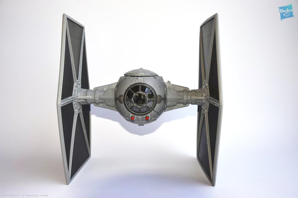 Hier einige Bilder vom neuen Tie. Auf den ersten Blick eine schoene Idee mit der Blast apart Funktion. Nach der Befreiung vom Karton gibt es Schwachstellen. Groesse der Fluegel, des Cockpits,alles gut. Die Fluegel sind groesser als vom alten Potf Tie, kleiner als die uebergrossen Fluegel des legacy Tie. Die Proportionen wirken gut. Leider sind die Fluegel krumm. Was evtl. daher kommt das die grauen Rahmen rund um den schwarzen Teil der Fluegel GUMMIERT sind! Warum? Der Mechanismus des Ties der die beiden Haelften zusammen haelt ist mit Geduld gaengig zu machen. Zuerst hielten die beiden Haelften nicht wirklich zusammen. Nach mehrmaligem betaetigen und zusammen und auseinander bauen haelt alles stramm zusammen. Der Tie ist gut balanciert, und steht gut und fest schon durch sein Gewicht. Die Farbgebung der Figur ist sauber und detailliert. Beim Forcelink geht der Sound vom Tie nicht, es wird wieder nach Update gerufen. Beim Piloten ertoente auch erst der Update Ruf, dann wurden aber die Saetze gesprochen. Der Cockpitdeckel steht etwas hoch, sollte aber nach mehrmaligem auf und zu sich geben.