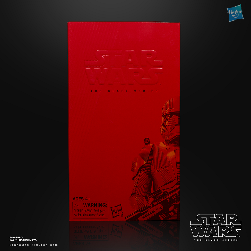 Fans can imagine fighting for the cause of the First Order and other thrilling scenes from the STAR WARS galaxy with this premium collectible STAR WARS: THE BLACK SERIES 6-INCH SITH TROOPER action figure. Inspired by scenes from STAR WARS: EPISODE IX: THE RISE OF SKYWALKER, this SITH TROOPER action figure features realistic detailing and premium articulation. Five character-inspired accessories and bright crimson deco make this item a brilliant addition to any STAR WARS toy collection. Includes figure and 5 accessories. Available at San Diego Comic-Con and on HasbroPulse.com following the convention.