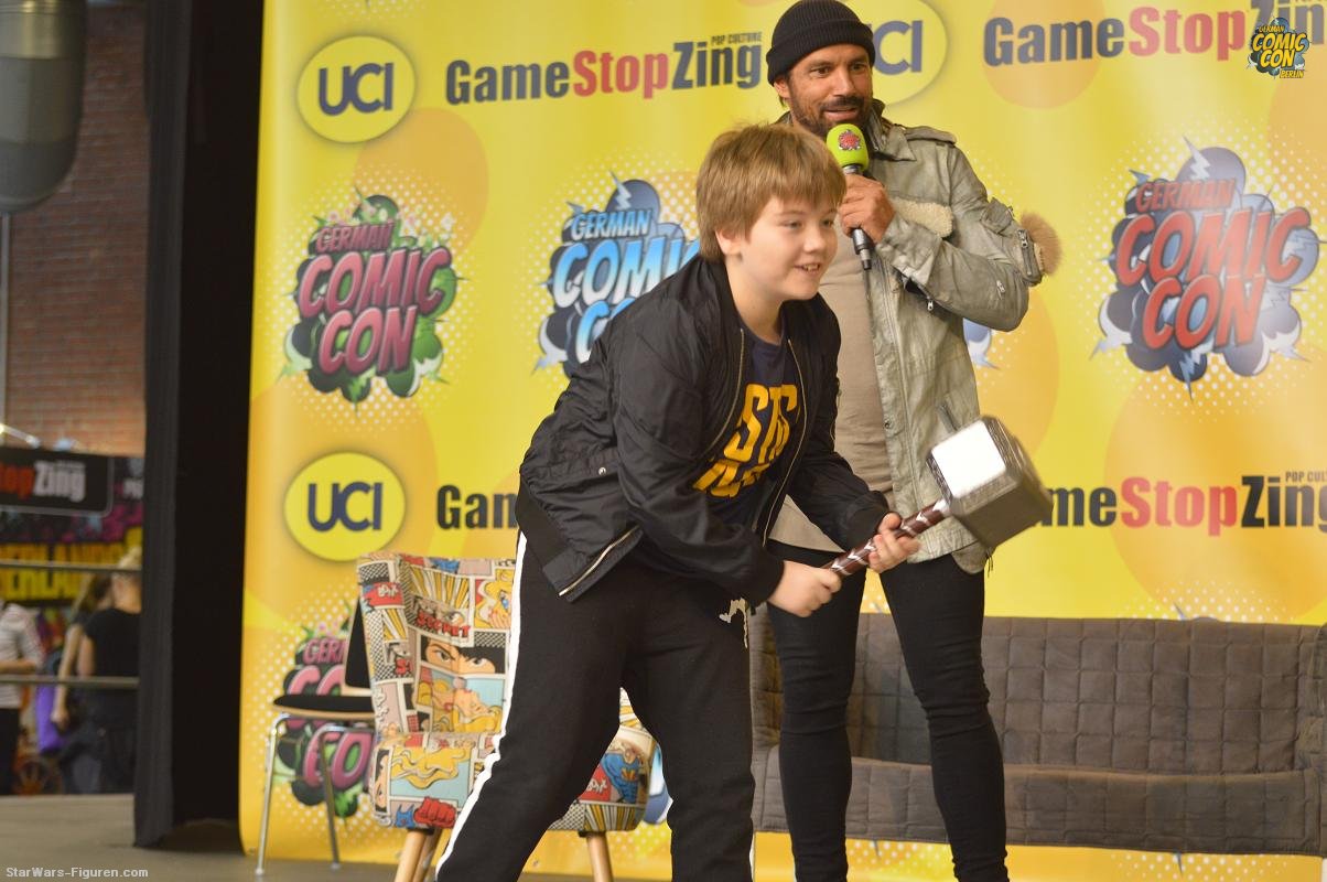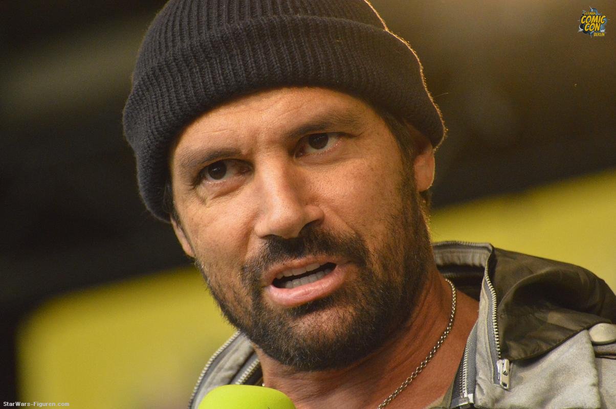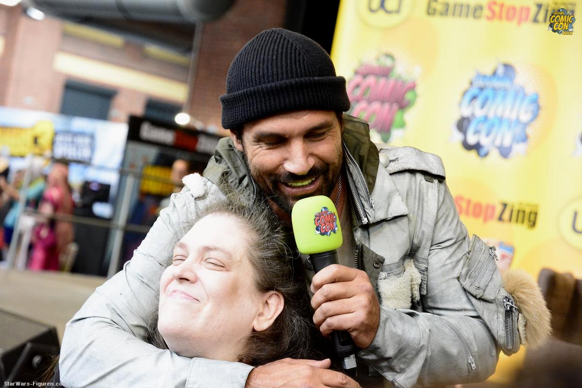 Actor Manu Bennett (Arrow, Hobbit, Spartacus) Manu hat die Besucher der Con bei seinen Auftritten mitgerissen und sie auch in seinen Vortraegen einbezogen. Eine sehr unterhaltsame Persoenlichkeit.