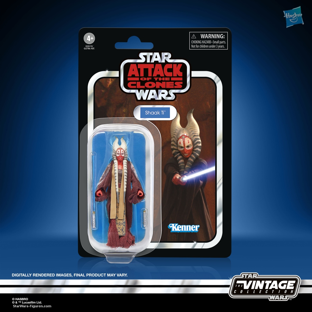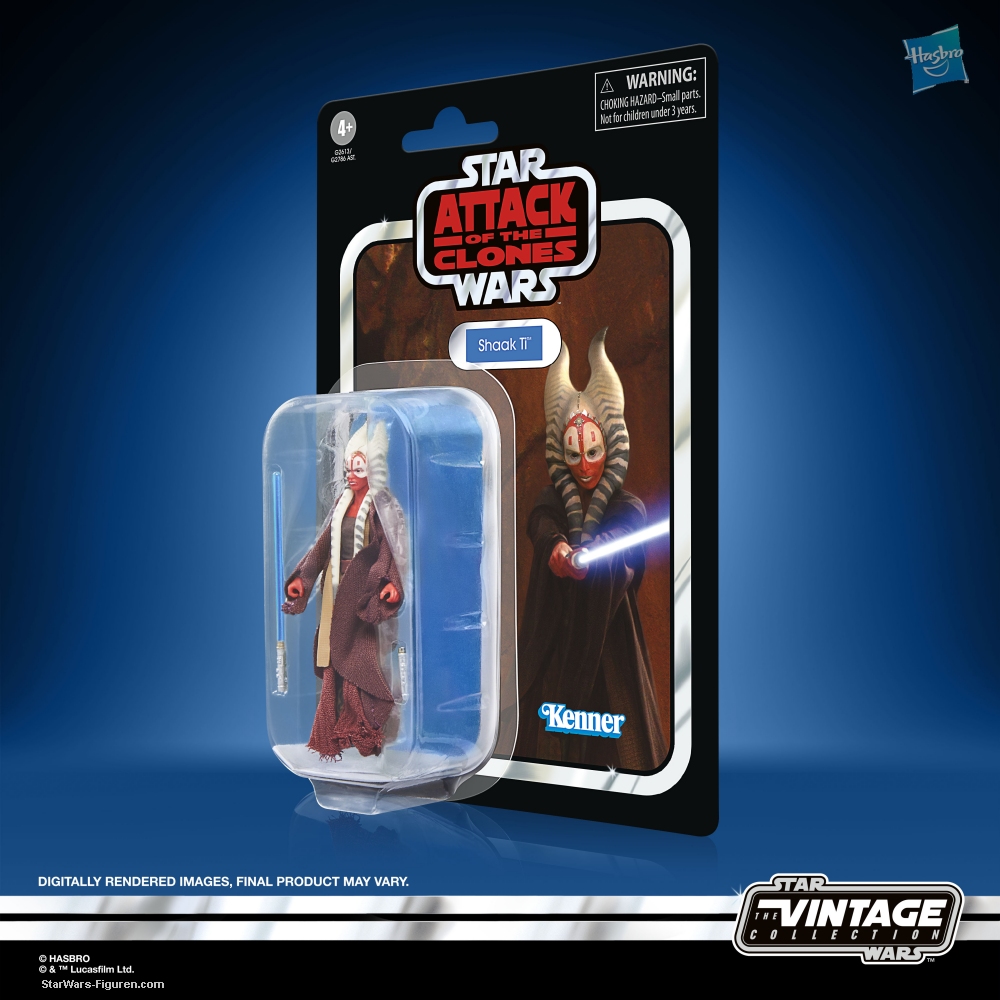 Shaak Ti fought at the Battle of Geonosis and supervised the training of clone cadets on Kamino. Celebrate the legacy of STAR WARS with premium vehicles, playsets, and action figures from STAR WARS: THE VINTAGE COLLECTION. Based on Shaak Ti from STAR WARS: ATTACK OF THE CLONES, this 3.75-inch-scale figure includes a poseable head, arms, and legs so fans can create dynamic poses for display. Comes with her blue-bladed Lightsaberâ„¢ and unlit hilt. Calling back to the original 1970s and 1980s vintage toys, this figure features Kenner branding and package design with a unique VC number for collectability (VC# 384). Inspired by the original line, these collectibles feature premium detail and design across product and packaging, as well as collector-grade deco that fans have come to know and love. Find other STAR WARS collectibles from THE VINTAGE COLLECTION to reimagine iconic scenes -- or create your own (each sold separately, subject to availability).