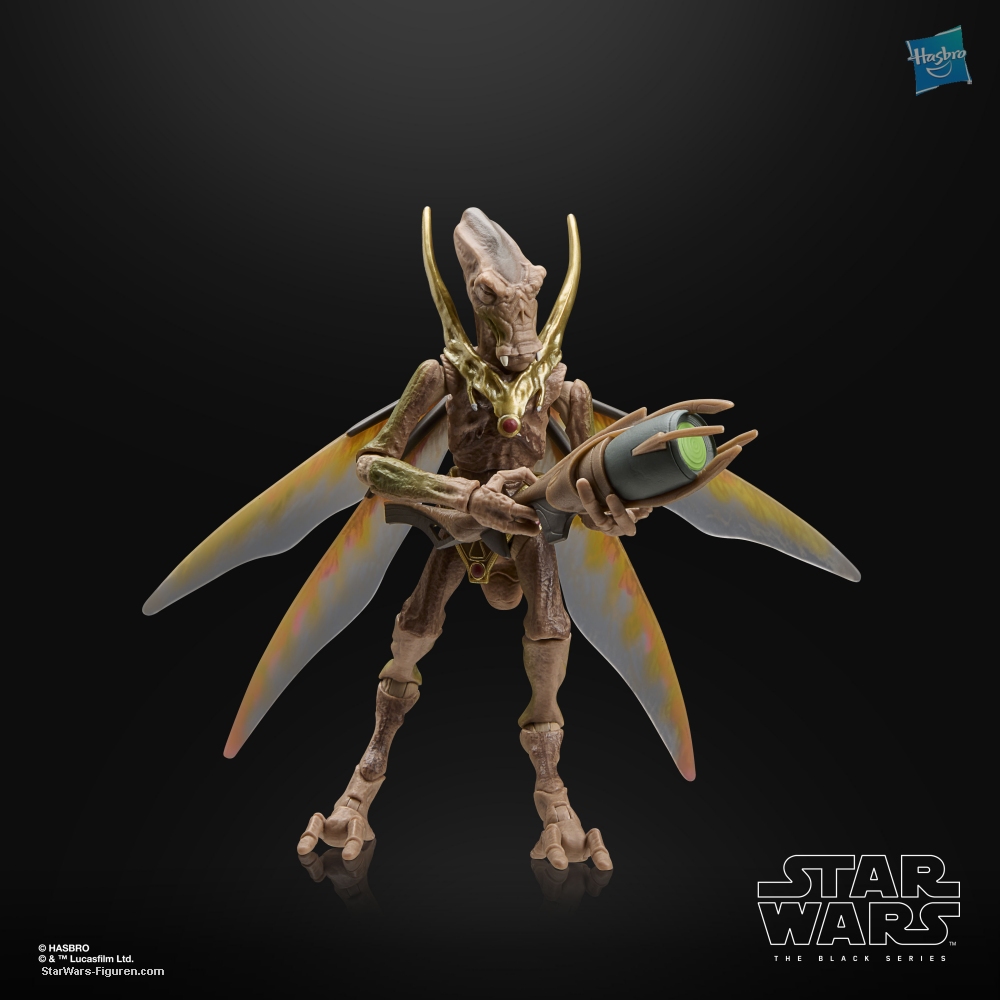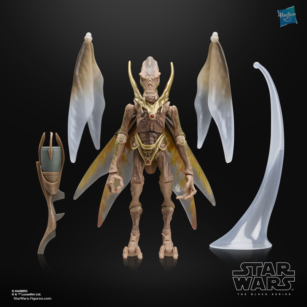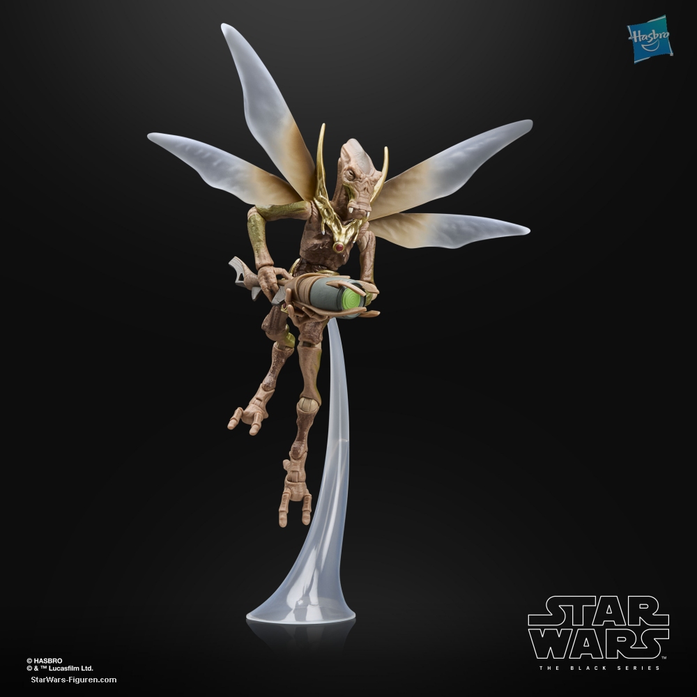 Geonosians are insect-like beings, complete with wings and nesting in colonies, who helped develop plans for the first Death Star. STAR WARS: THE BLACK SERIES includes 6-inch action figures, vehicles, and roleplay items from the 40-plus-year legacy of the STAR WARS galaxy, letting fans create galactic scenes with a faithfulness to STAR WARS comic books, movies, series, and more. This STAR WARS Hasbro action figure is detailed to look like a Geonosian warrior from STAR WARS: ATTACK OF THE CLONES. Comes with a blaster, swappable wings, and a clear stand to pose him out in mid-flight. With exquisite features and decoration, THE BLACK SERIES embodies the quality and realism that STAR WARS devotees love (additional products each sold separately, subject to availability).