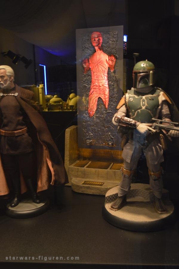Today we had the opportunity to visit "Filmfiguren Ausstellung in Moenchengladbach". We had met the friendly folks around Thomas Manglitz at Celebration Europe II in Essen, and we decided to do a report about their awesome Exhibition. So we grabbed the camera and off we went. For those who don't know, yes Thomas and Crew were the ones selling the 6inch Boba Exclusive at Celebration Europe II. Finding the location was pretty easy as well as finding a parking spot for our piece of junk. Upon arrival we were greeted by Thomas and we decided to snoop around a little for ourselves and take a picture or two. The Exhibition focuses mainly on Star Wars Characters, but more and different characters will join in in the near future. As the exhibition is continously changing, so what you see here is just a small glimpse of what to expect. You have to see it for yourself!!!