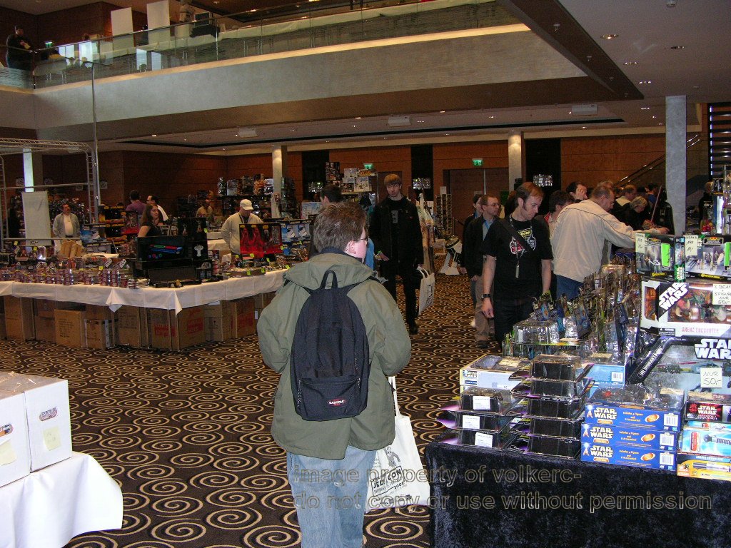 Jedi Con 2008 was held at the Maritim Hotel in Duesseldorf, Germany, directly at the airport. Visitors were able to see the stars up close, shop for Star Wars collectibles in the dealer area as well as buy con merchandise. During the day visitors could attend different panels, informing guests about all kinds of areas, Star Wars. Autograph sessions were set up for those wanting to meet the stars, getting personal items or photos of the actors signed. Opening celebrations were held in the evening, where all stars were officially introduced, followed by an informative session with Stephen Sansweet, who showed a few films and trailers of the upcoming Clone Wars movie and later TV series, The Force Unleashed game, Indiana Jones Lego game, Indiana Jones trailer, a small glimpse from Robot chicken. He finished with a Q&A where fans could asked questions, and the ones he was "allowed" to answer he gladly replied to.